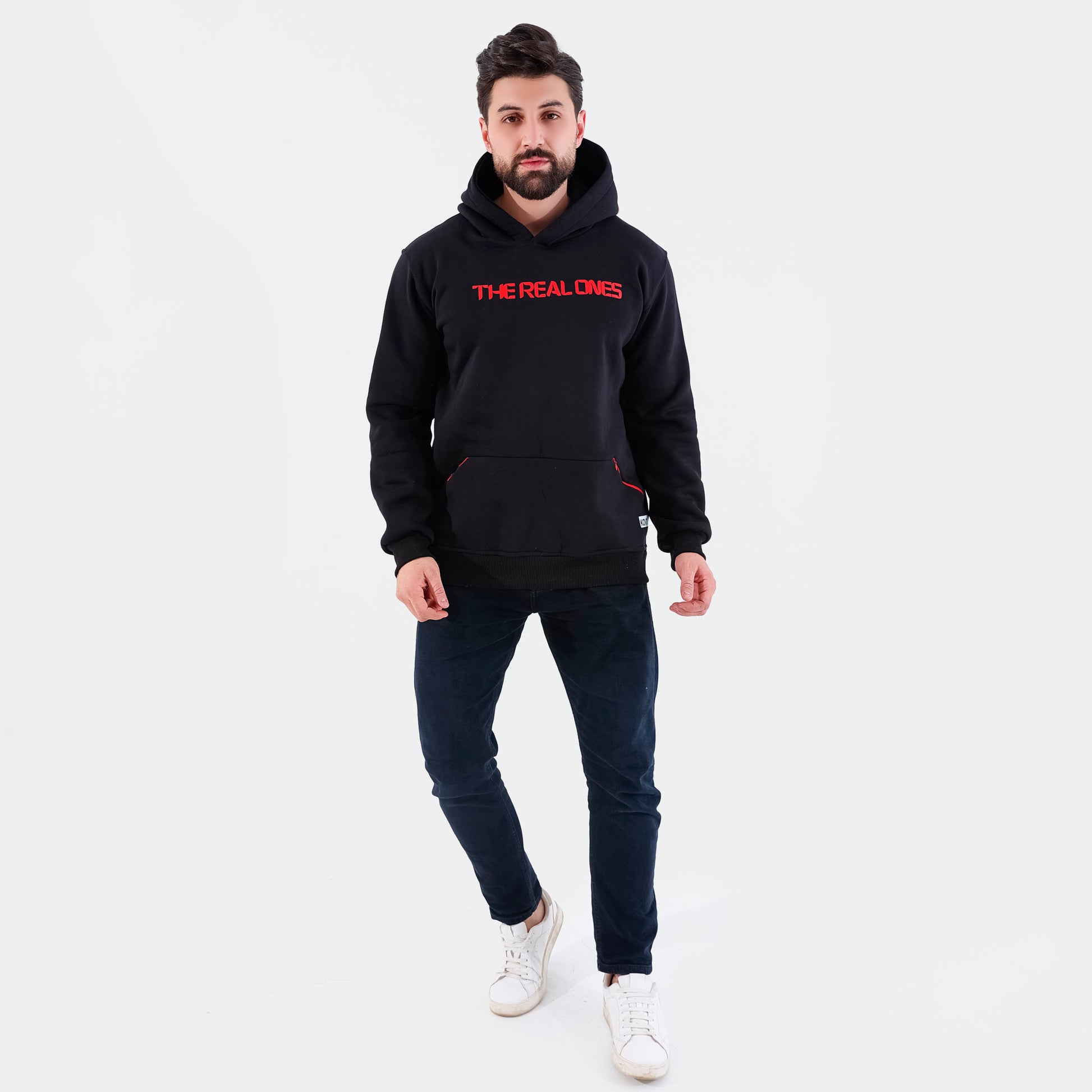 The black hoodie keeps both buddies united in one identity, while the red and blue details highlight a simple truth:
