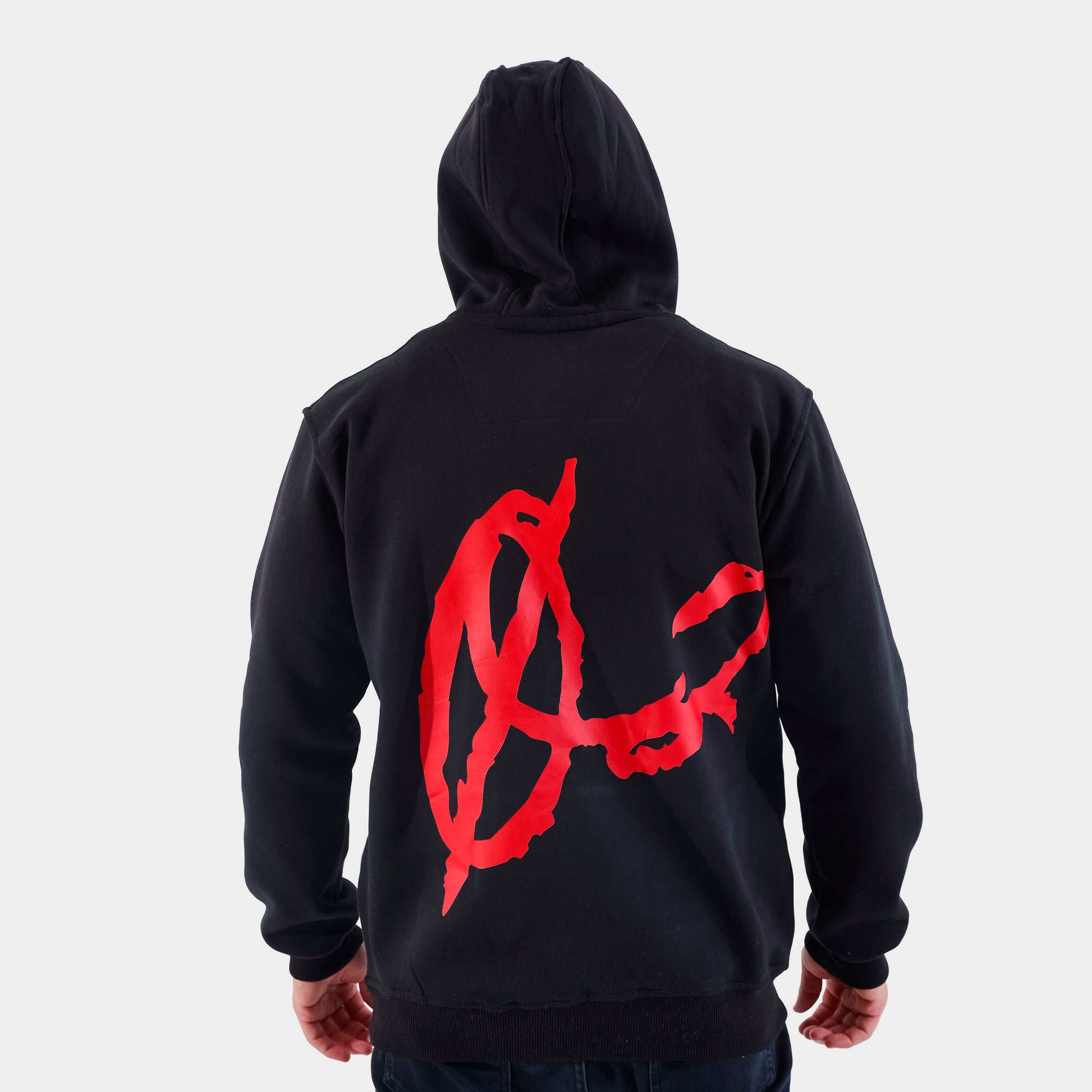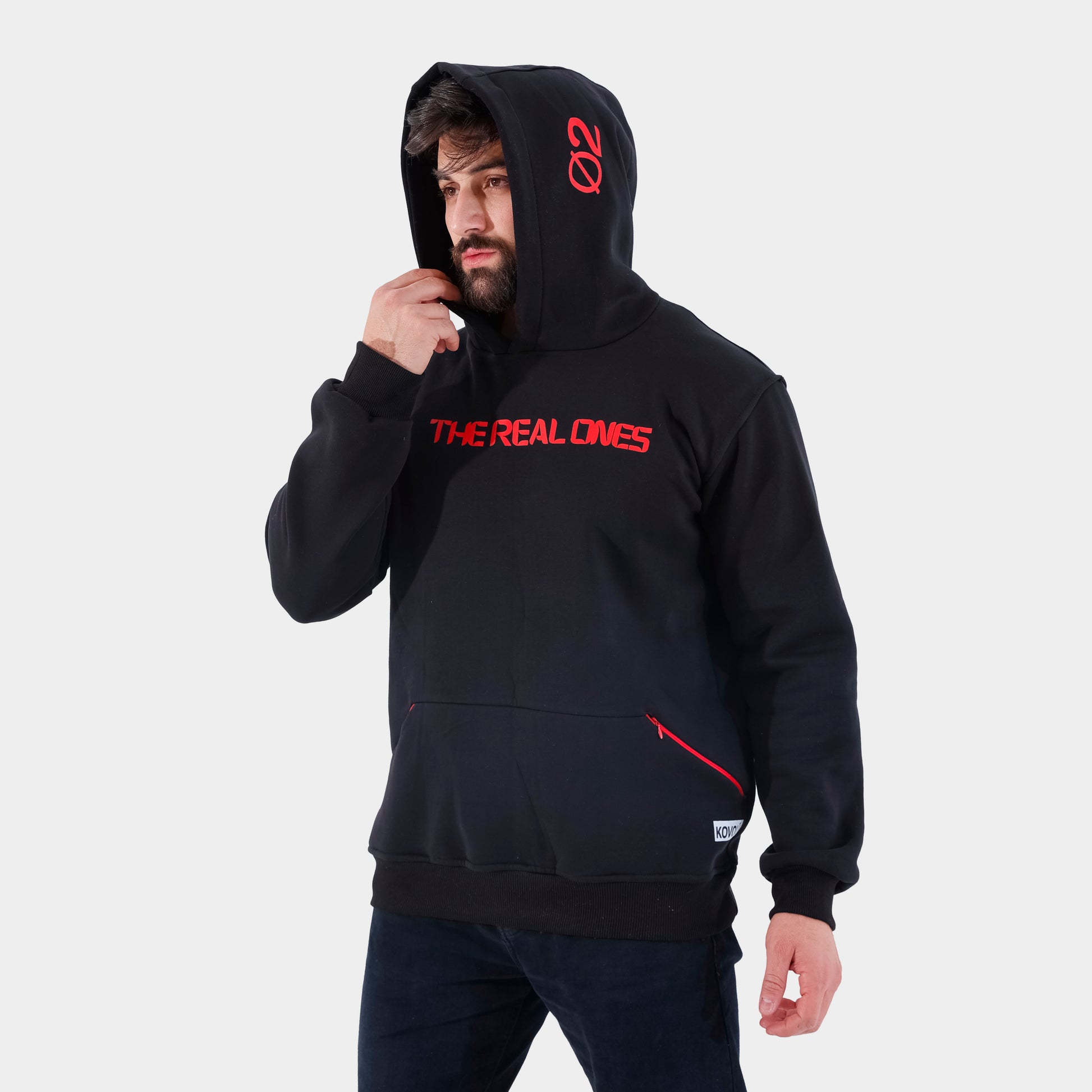 Made from 100% cotton for warmth and comfort, it features a double red and blue zippered pocket, paired with a matching red and blue 02 back print.
